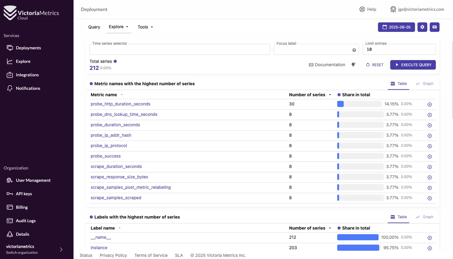 Metrics and Cardinality Explorer